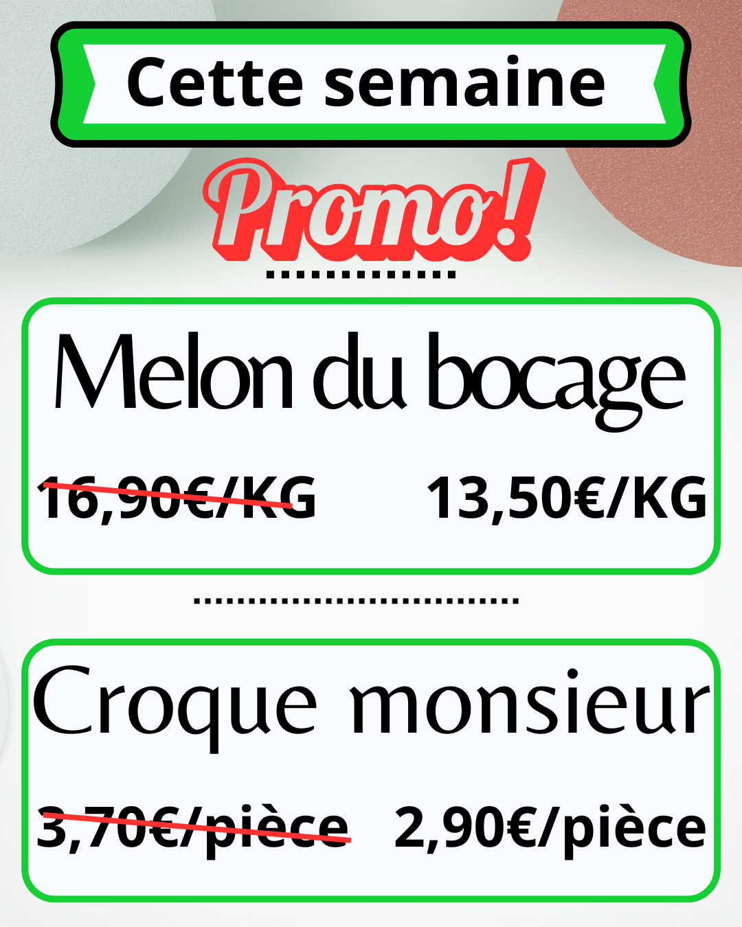 Toutes les semaines nous proposons des promotions.