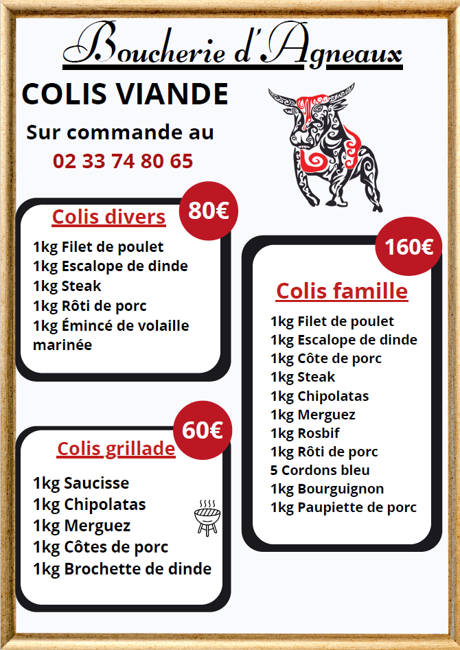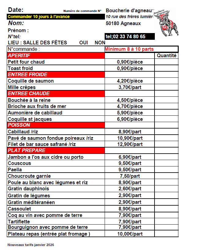 - Toutes les commandes passées sur le site sont à retirer à la BOUCHERIE D'AGNEAUX - 10 rue des frères lumières 50180 AGNEAUX
